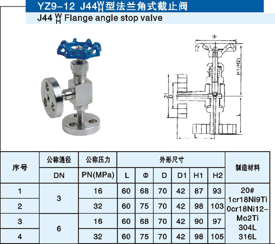 J44W型法蘭角式截止閥